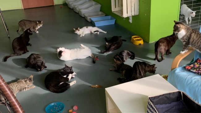 Lokatorzy w pokojach podzieleni są „charakterologicznie”. Spokojne, powolne i starsze kotełki – przebywają w sanatorium, natomiast młode i skore do figli – w którymś z pozostałych pomieszczeń.