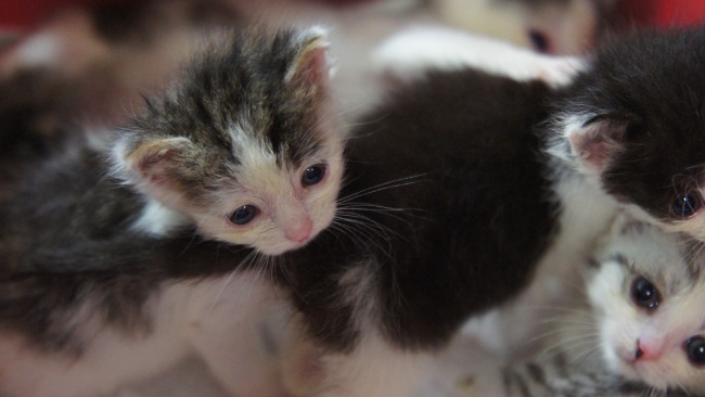 Trafiają się nam też kotki, które za żadne skarby nie chcą się dogadać z resztą stada i musimy je izolować w oddzielnych boksach lub pokoikach. Obecnie w tych prowizorycznych izolatkach pomieszkują kocięta. W ogóle, ostatnio mamy wrażenie, że kocięta są wszędzie. Są w przedszkolu, w szpitaliku, w boksach i w domkach tymczasowych. Pod naszą opieką obecnie przebywają 84 koty w tym ponad 30 maluchów