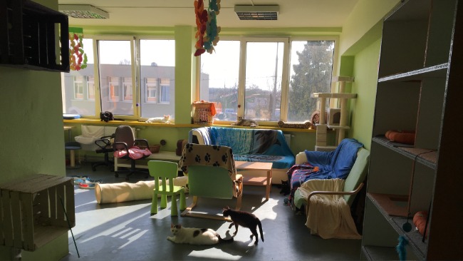 Lokatorzy w pokojach podzieleni są „charakterologicznie”. Spokojne, powolne i starsze kotełki – przebywają w sanatorium, natomiast młode i skore do figli – w którymś z pozostałych pomieszczeń.
