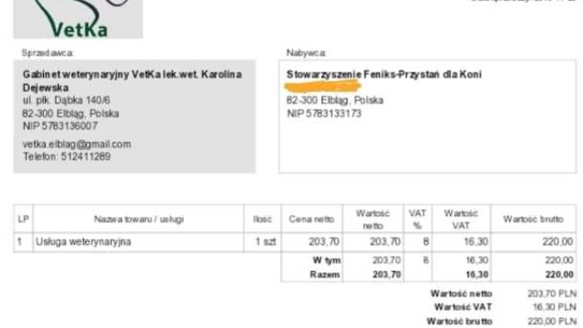 Anioly ja wiem ze jesteście z nami i ze pomorzecie nam …. DZIEKUJE Z CALEGO SERCA ZA TO ZE JESTESCIE …. KOCHANI DZIEKUJEMY ZA POMOC DLA MUSZKI,NIESTETY NIE UDALO SIE. MUSZKA ODESZLA DZIS NAD RANEM :( KOCHANI WASZE PIENIAZKI ZOSTALY PRZEKAZANE NA POKRYCIE KOSZTOW ZA FV.... DZIEKUJE MOI PRZYJACIELE ZA POMOC DLA MUSZKI ,JESTESCIE KOCHANI... PONIZEJ SA FV NA KTORE POSZLY WASZE PIENIAZKI...