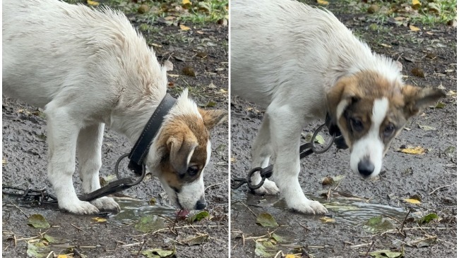 Ten szczeniak, ma zaledwie kilka miesięcy. Cały drżał z zimna, był przemoczony, głodny i zdezorientowany.