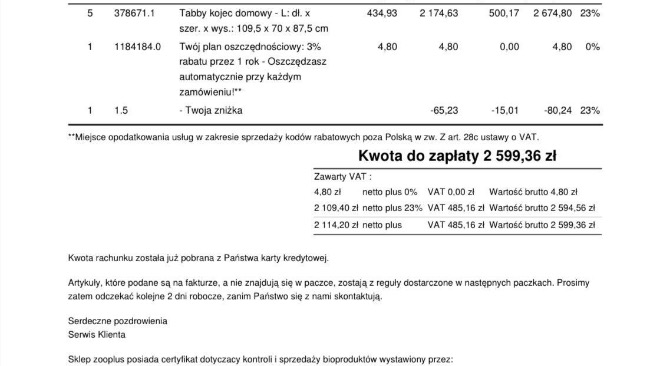 Do zrzutki wstawiam faktury za zakupione rzeczy.Kupiłam pięć szczelnych kojców, klatki kenelowe mają wiele wad nie są szczelne, wielokrotnie mi z nich kocięta uciekały.Kupiłam pledy, miski, kupiłam ocieplaną budkę w której zmieści się sześć kotów kiedy będzie im zimno.Na razie nie mam ogrzewania, musimy jakoś sobie radzić aż będę mieć ogrzewanie.