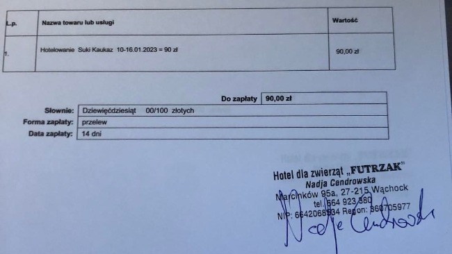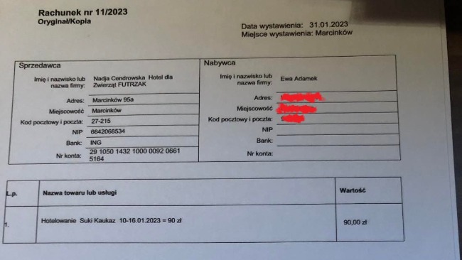 Załączam rachunek za hotelowanie suczki.