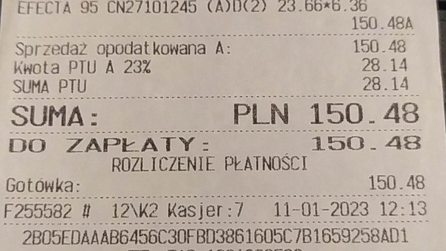 Załączam paragon za paliwo za transport do hoteliku "Futrzak" w Wąchocku.