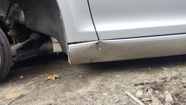 Niestety nie wszyscy szanują innych ludzi, którzy ciężko pracują żeby zapewnić w miarę godziwy byt rodzinie (12-letnia Skoda to przecież nie rarytas). W nocy z poniedziałku na wtorek (z 10.10 na 11.10) z mojego auta zostały skradzione koła, a na dodatek złodzieje zrobili paskudną dziurę w progu auta, prawdopodobnie od ich lewarka.