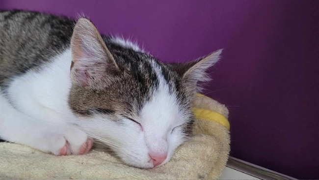 Mam roczek i to ja znalazłem moich ludzkich rodziców kiedy byłem malutki. Mój przyszły Tata był w pracy kiedy usłyszał moje płakanie pod paletą kostki brukowej przy ruchliwej drodze. Na szczęście Tata zabrał mnie ze sobą, a w nowym, ciepłym domku okazało się, że mam 4 rodzeństwa. Niestety od jakiegoś czasu czuję się źle, mam gorączke i wymiotuję. Byłem wczoraj u Pani Doktor i okazało się, że mam jakiś płyn w brzuszku,