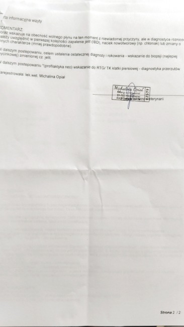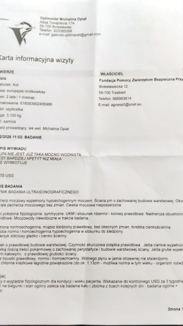 Dyzio… Kilka miesięcy temu zdiagnozowany rak kolczystonabłonkowy. Amputowane małżowiny uszne. Ostatnio mniej aktywny, schudł. Dzisiejsze badania budzą niepokój. Lekarz obawia się przerzutów na narządy. W poniedziałek szczegółowe USG.