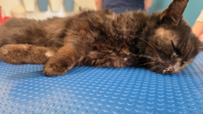 Bambi. 16 lat. 1,8 kg. Filigranowa seniorka. Czas usunąć połamane, bolące zęby. Musimy podejść do narkozy bardzo ostrożnie.