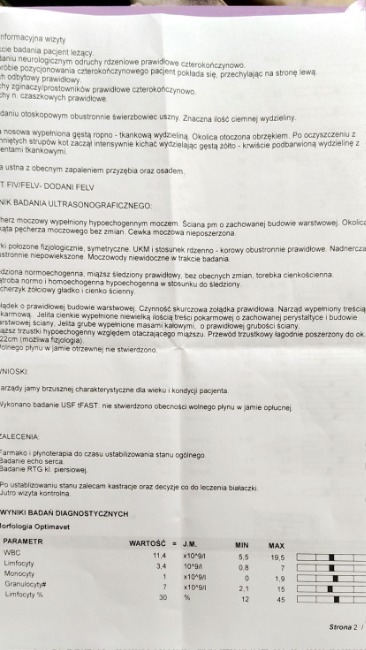 Dodatni FeLV - Białaczka.