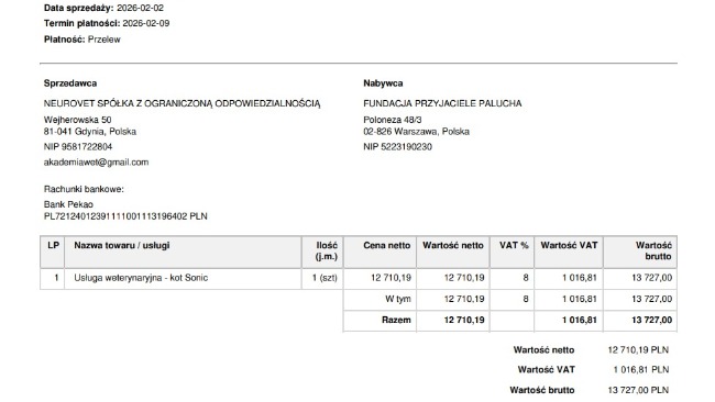 Teraz jednak musimy poprosić Was o pomoc w opłaceniu operacji Sonica. Niemal 14 000 zł to ogromna kwota i bardzo prosimy o pomoc przy tak niespodziewanym dla naszej Fundacji wydatku. Za każde wsparcie będziemy ogromnie wdzięczni i z całego serca dziękujemy za całą Waszą dotychczasową pomoc. Jesteśmy naprawdę wzruszeni i wdzięczni, że wraz z Wami wciąż możemy pomagać.