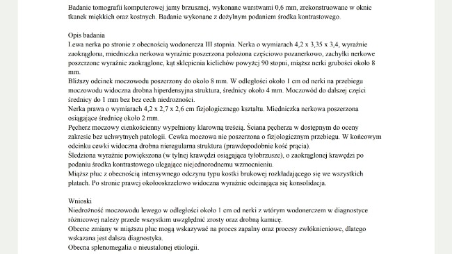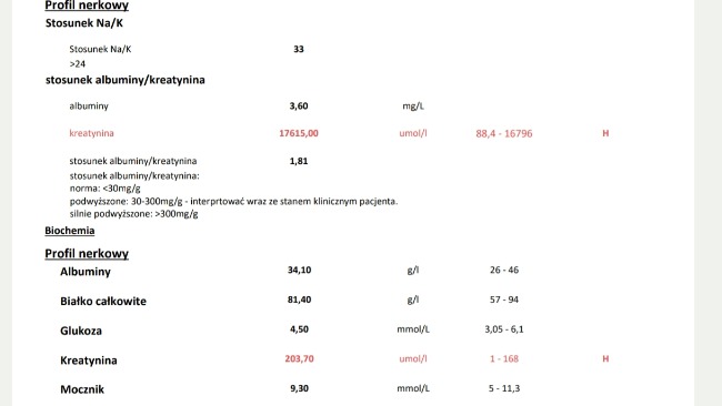 Do zrzutki załączam wyniki krwi oraz tomografię Ptysia.