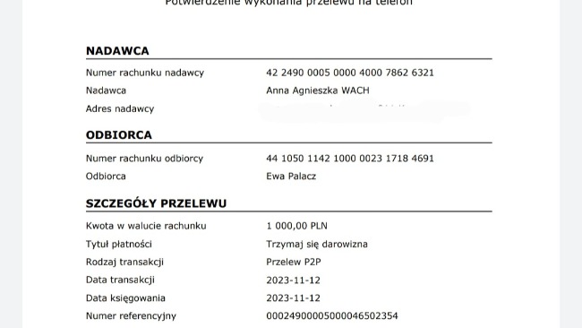 Edycja: przelew na konto Ewy