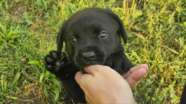 4 tygodnie. Niespełna miesiąc. Tyle miała Ninja, gdy jej „opiekun” (czytaj: pseudohodowca) przyprowadził ją do weterynarza z żądaniem uśpienia. Czemu? Bo wiedział zapewne, że TAKI egzemplarz się nie sprzeda, zatem trzeba się go pozbyć. TAKI, czyli nie w 100% bez skazy. Sunia miała bowiem problem z popuszczaniem moczu. Oderwano ją od matki o wiele za wcześnie, nie dano nawet szansy na diagnozę czy leczenie – wyrok wydano bez wyrzutów sumienia. Na szczęście weterynarz kategorycznie sprzeciwił się uśpienia malutkiej. Skontaktował się zlabradory.org i tak oto szczeniątko trafiło pod naszą opiekę.