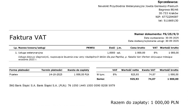 Nie czekaliśmy i Ninja została poddana szczegółowym badaniom – miała USG układu moczowego, tomograf, badania krwi i moczu z posiewem, konsultację nefrologiczno-urologiczną. Badania potwierdziły to, co weterynarze podejrzewali – ektopię moczowodu lewego. Jest to wada wrodzona, operacyjna. Moczowód nie dochodzi do pęcherza. Wyniki krwi były dobre, wykazały co prawda lekką anemię, ale tak wczesnym odebraniu od matki nie można było spodziewać się czegoś innego. Posiew moczu ujawnił obecność bakterii Escherichia coli. Malutką czeka więc suplementacja, antybiotykoterapia, ale przede to co najtrudniejsze i obciążające finansowo - konieczność operacji. Operacja planowana jest na 16 października.