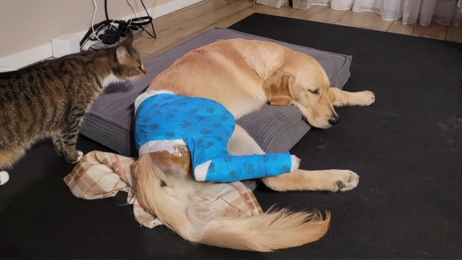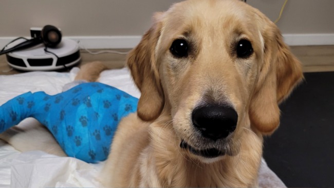 Jest nam bardzo ciężko, staramy się zapewnić mu jak największy komfort bo musi tak być przez następne 3 tygodnie.