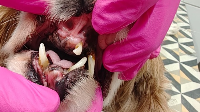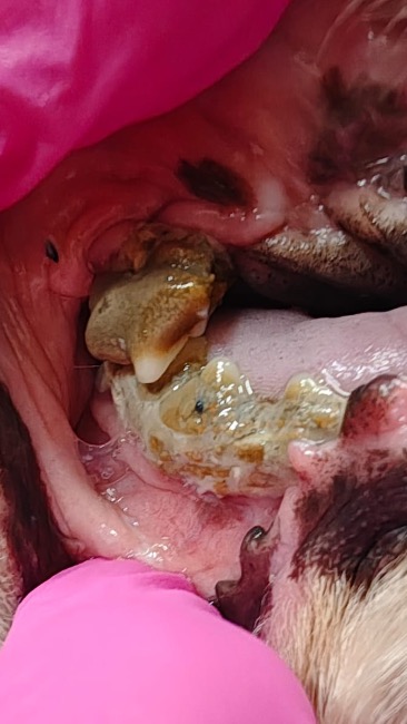 Guzy na listwach mleczny, problemy z oczami, anemia. Grzyb w uszach. Z zębów raczej nic nie da się uratować, kamień i stan zapalny. Sunie są po badaniu krwi i konsultacji okulistycznej. Przed suczkami kastracje, badania USG jamy brzusznej i badania serca a także zrobienie zębów, usunięcie listw mlecznych.