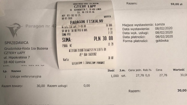 Póki co chcę go zabrać na pierwszą wizytę u weterynarza i tam poczeka na odbiór.