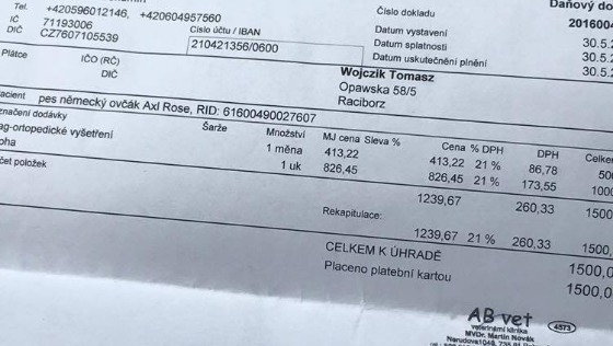 Bardzo dziękuję wszystkim, którzy udostępniali niniejszą zbiórkę oraz osobom który wsparły ją finansowo. Dziś byłem na kontroli w Abvet w Bohuminie, mogłem zaliczkować czekający Nas zabieg i umówić AXL'a na termin jego wykonania. Całość powinna zamknąć się w 6 500 koron. 9 lipiec 2016 r. będzie już po wszystkim, co prawda stu procentowej gwarancji lekarz mi nie daje, aczkolwiek twierdzi że to wszystko co możemy dla Niego zrobić. Raz jeszcze dziękuję i pozdrawiam, Tomek i AXL.