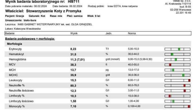 Gracja czyje się o niebo lepiej, apetyt powrócił, na nowo stała się miziskiem, nie unika już kontaktu z człowiekiem.