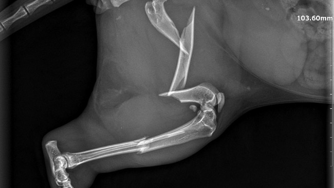 Dziś Pani Ania z Przychodnia Weterynaryjna CapraVet zrobiła zdjęcie rtg łapki. Okazało się, ze ta jest złamana w trzech miejscach 😱Takiego urazu mógł się nabawić tylko w bliskim spotkaniu z pędzącym autem 😢 Filemon niestety przebiegał 32. Tym razem nie zdążył. Na szczęście, choć poturbowany, dotarł na swoje śmieci. Gdyby skrył się gdzieś w krzakach…
