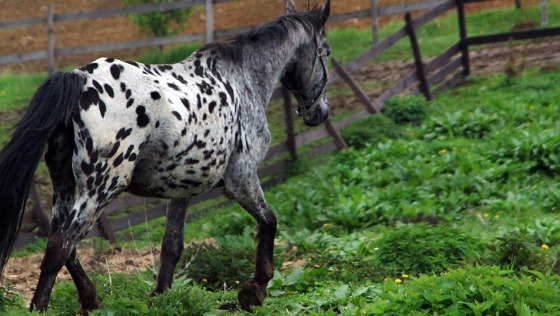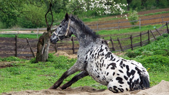 Klacz - matka stadna - staruszka. Ile źrebiąt urodziła? Po zapadniętym grzbiecie i obwisłym brzuchu można stwierdzić, że sporo. Do nas dotarła ze swoim ostatnim dzieckiem. Już nigdy więcej nie będzie wykorzystywana do hodowli.