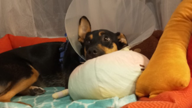 Przed nami czekanie na wyniki i dalsze leczenie. Na dzień dzisiejszy jest podejrzenie osteochondrozy, jednak bardzo nietypowo umiejscowionej, bo w kości. Nie mamy pewności czy Pixie wróci do pełnej sprawności. Wiemy, że potrzebna jest rehabilitacja, by nadbudować mięśnie przy usuniętych fragmentach C1 i C2.