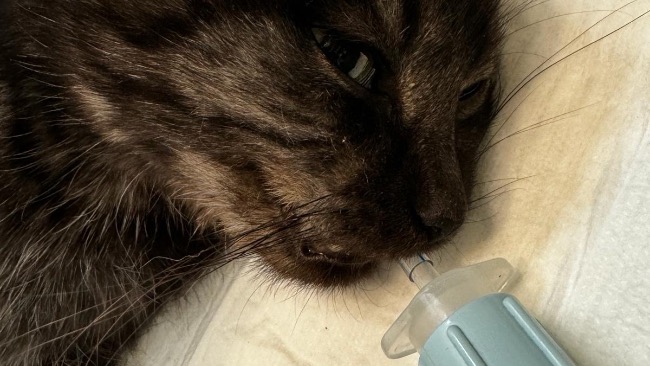 Nagle zauważa go Pani Natalia. Kociak nie wie jeszcze, że ten człowiek ma dobre serce i nie zrobi mu krzywdy. Przekonał się o tym, kiedy Pani Natalia zabrała go do samochodu, dała jeść i poprosiła nas o ratunek.