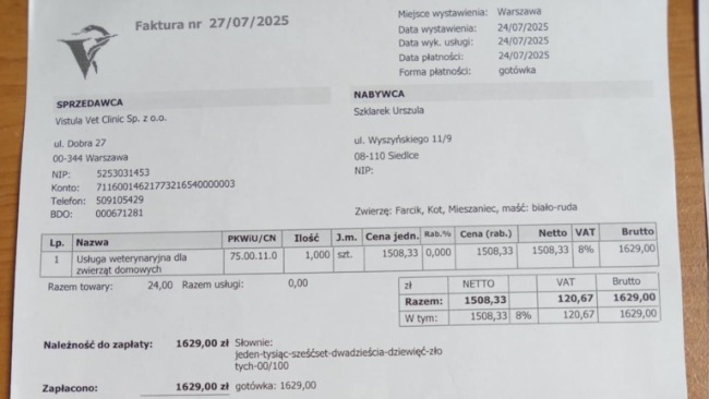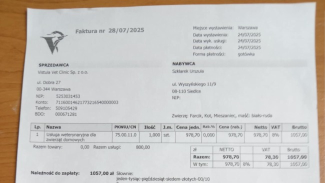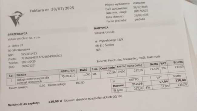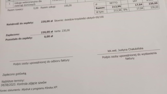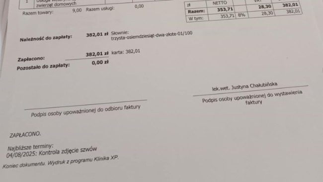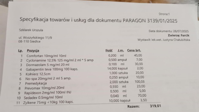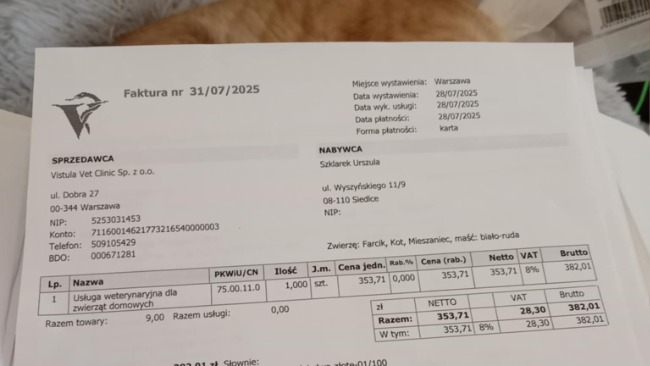 Do tych faktur będe miała jeszcze jedną zbiorczą od miejscowej pani Weterynarz.