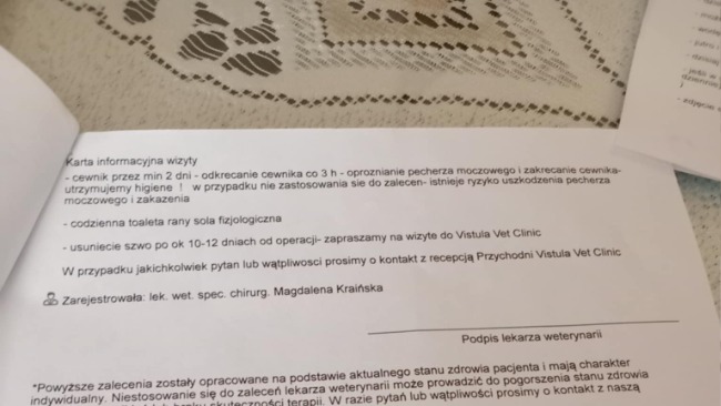 Sytuacja się bardzo pokomplikowała. Farcik przeszedł operacje stulejki na którą zbieraliśmy pieniądze... niestety okazała się ona nieskuteczna. Chwilę po operacji w okresie rekonwalescencji puściły szwy. Wdał się stan zapalny i cewka zaczęła zarastać... Farcik mój biedny trójłapek krwawił i znów okrutnie płakał z bólu... nie mogłam czekać. Po antybiotykoterapii i wizytach kontrolntch w klinice w Warszawie i u naszej miejscowej pani weterynarz okazało się, że nie ma poprawy. Zapadła decyzja o pilnej reoperacja - zrobiona została plastyka. Farcik spędził aż 7 dni w szpitaliku by być pod ścisłą kontrolą. Wypisany w stanie dobrym. Zaczęłam wierzyć, że najgorsze za nami. I znów kolejny dramat, moje Serce nagle przestało siusiać! Diagnoza mnie sparaliżowała. Będzie trzeba wyłonić urostomię by Farcik mógł siusiać i... żyć.