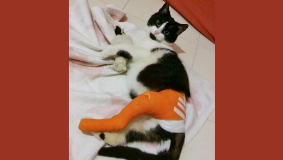 Kocurek trafił do Przychodni Weterynaryjnej NicpońVet, gdzie został zdiagnozowany. Okazało się, że Pan Kot w wyniku potrącenia doznał złamania kości miednicy oraz poważnego uszkodzenia łapy. W kolanie poprzemieszczały się w kości. Zostały poustawiane na swoim miejscu i unieruchomione. Ponadto wstrzykiwana była surowica. Niestety przy okazji badania krwi dowiedzieliśmy się o dalszych problemach Pana Kota. Cierpiał na krwotoczne zapalenie pęcherza, miał znacznie podwyższone parametry nerkowe (mocznik i kreatynina), oraz zapalenie wątroby i trzustki. Weterynarze wykorzystali wszystkie oszczędności przychodni przeznaczone na leczenie bezdomnych zwierząt, by pomóc kocurkowi. Konieczne było kosztowne leczenie oraz regularne kontrole krwi.