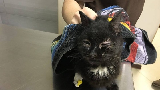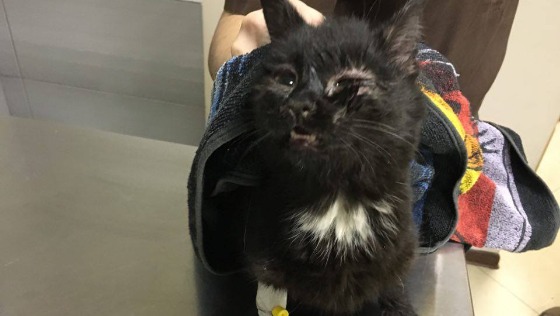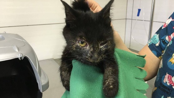 Była strasznie odwodniona, ma ogromny koci katar, ledwo oddycha i jeszcze niewiele widziała przez zaklejone ropą oczy.