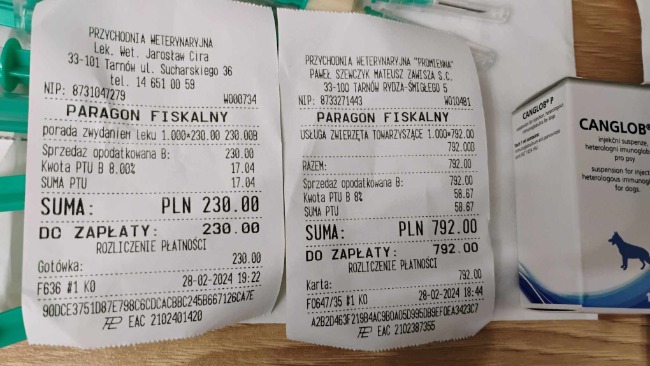 Dostały szereg zastrzyków, leki i kroplówki. Są bardzo słabe, próbują wstawać ale ledwo utrzymują się na nogach.