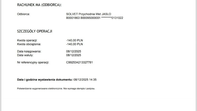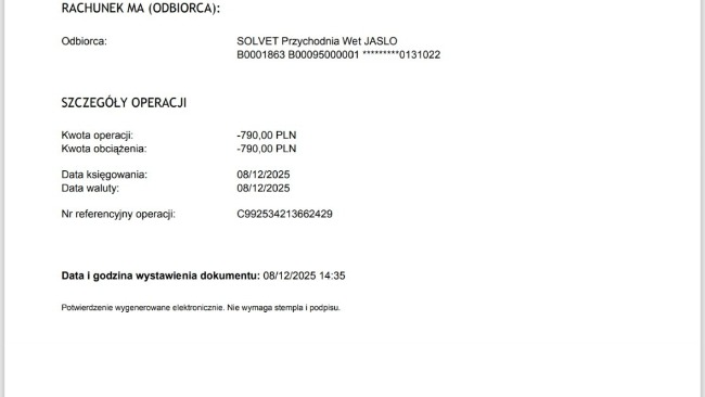 Poniżej dołączam zdjęcia RTG oraz potwierdzenia płatności.