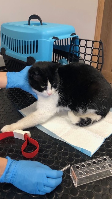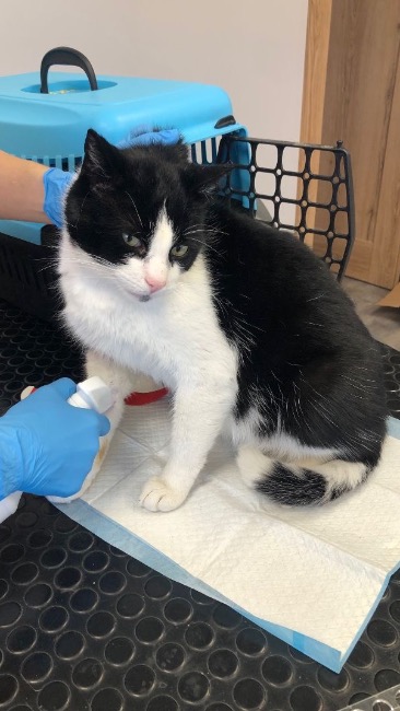 Pani, na której posesję przywędrował kocurek, zabrała go do weterynarza, gdzie okazało się, że niestety, nie tylko nie ma chipa, ale nie jest również wykastrowany 💉.