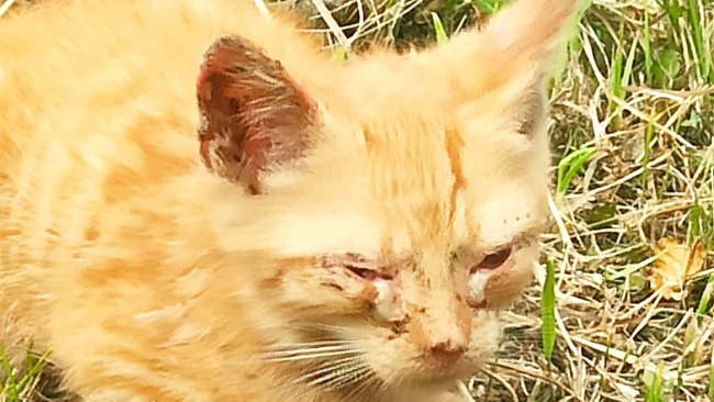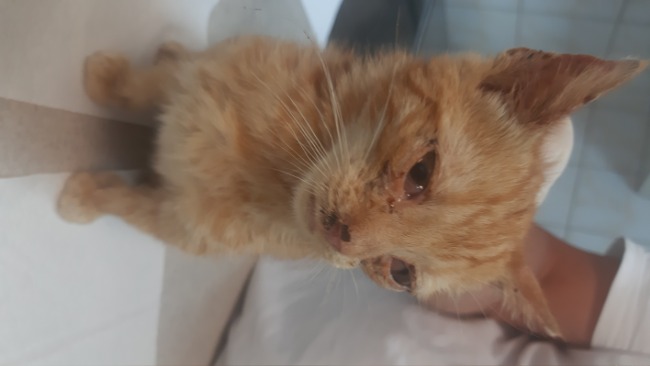 Maluch prawdopodobnie cierpi na koci katar, oczka i nosek zalewa ropa 😿