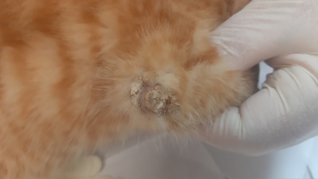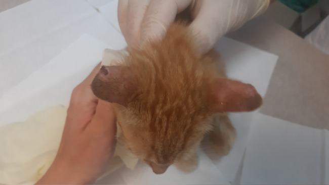Aktualizacja, kociak już po wizycie u weterynarza. Ma grzybice, joci katar oraz ostrą biegunkę. Wykonaliśmy test FPV - wirus panleukopeni wynik testu na szczęście ujemny. Koteł dostał leki zostal odpchlony, zakropione zostały oczka . Pobrany został również Kał do badania, wyniki już niebawem.