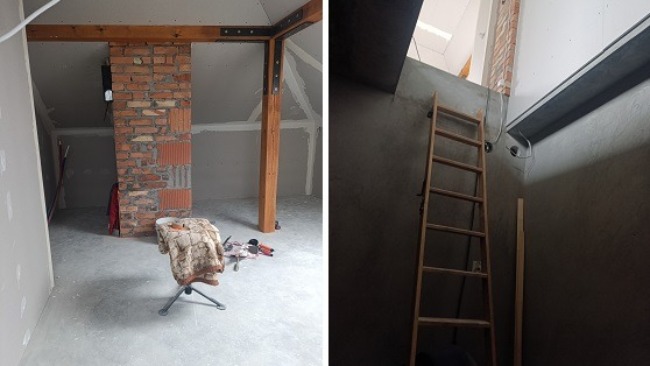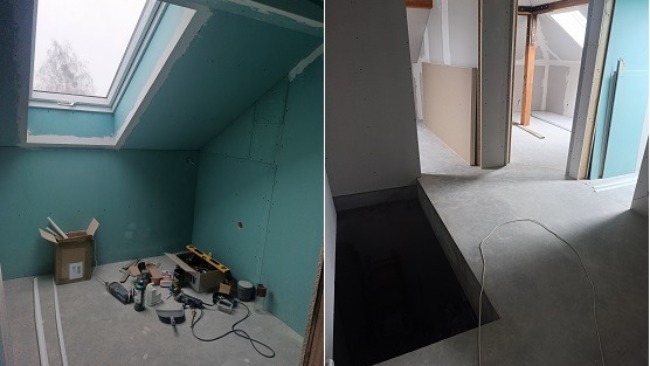 Mąż Pani Magdy metodą gospodarczą robi, co może, by przygotować na poddaszu pokoje. Samodzielnie i z własnych środków wykonali już część prac, ale jeszcze bardzo dużo przed nimi.