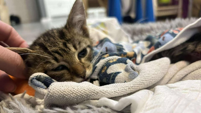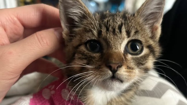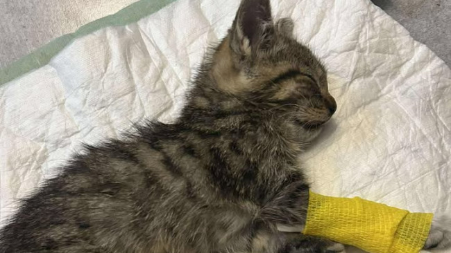 Maleństwo, zmaltretowane, poobijane. Łapka wyrwana ze stawu, bez czucia. Druga połamana.