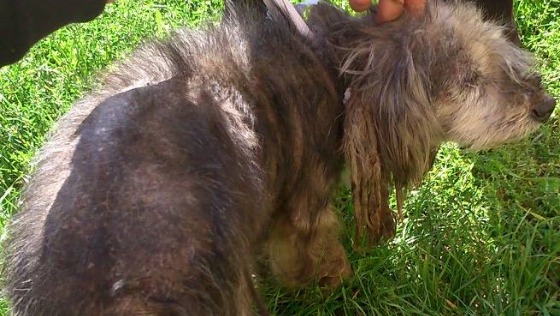 Na szczęście reaguje jedna osoba, której los zwierząt nie jest obojętny. Nie mogąc znieść widoku małego czworonoga poprosiła nas o interwencję. Dnia 06.09.16 udaliśmy się na miejsce. Serce nam prawie pękło widząc psa w stanie strasznego zaniedbania. Rex, bo tak ma na imię, ma liczne rany na ciele, szyi i uszach. Dodatkowo całe ciało pokryte jest świerzbem, grzybem oraz pchłami. Widok jest bardzo smutny, tak smutny jak ten psiak. Na miejscu dowiadujemy się, że pies dokarmiany jest przez sąsiada. Dzięki tzw.panu dobre serce pies żyje! Mimo iż pan sam prowadzi bardzo ale to bardzo skromne życie i nie stać go na żadne leczenie utrzymuje psa przy życiu! Pomaga mu w taki sposób na ile może. I chwała mu chociaż za to! A gdzie jest właściciel tego czworonoga, od razu zadajemy pytanie. Jak się okazuje pies miał kiedyś swojego właściciela, ale niestety on umarł. Psem miał zająć się syn właściciela. Niestety tak się nie stało. Pies codziennie uciekał z podwórka w poszukiwaniu swojego opiekuna, z nadzieją, że kiedyś go znajdzie. Z dnia na dzień marniał w oczach, aż w końcu Pan Dobre Serce zaczął go dokarmiać! Nie wiemy jak długo pies jest w takim stanie. Wygląd psa świadczy, że trwało to bardzo długo i musiał potwornie cierpieć. Świąd skóry był tak mocny, że pies zatrzymywał się już podczas przejścia przez drogę i drapał na środku ulicy, nie zważając na klaksony przejeżdżających aut.