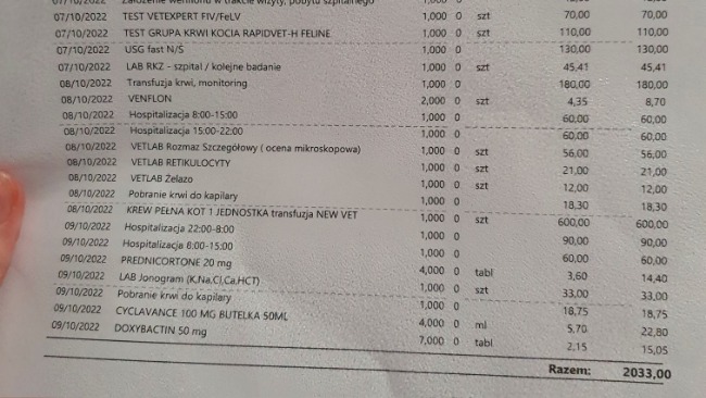 Wszystkie badania, leki to duże pieniążki, a mama stwierdziła, że zrobi wszystko, bym wyzdrowiała.(Sam mój weekend w lecznicy kosztował łącznie 2033 zł!). Nie rozumiem tych wszystkich liczb, więc poproszę mamę, żeby wstawiła zdjęcia. Dzięki pomocy osoby, która też mnie bardzo lubi, udało się przedłużyć możliwość spłaty i trochę zmniejszyć jej koszt.