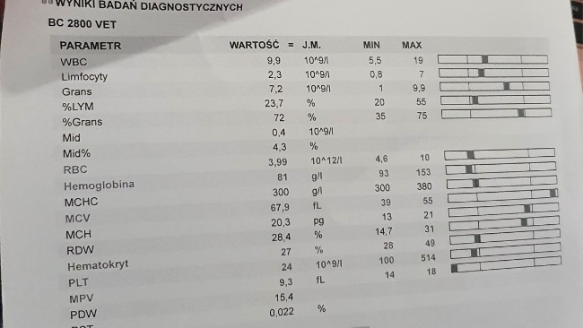 Teraz mój hematokryt wynosi 42%!! Zdrowieje, lecz nadal musimy kontrolować jego poziom, co wiąże się z kosztami :( więc nadal proszę o pomoc i dziękuję za dotychczasowe serduszko mi okazane!