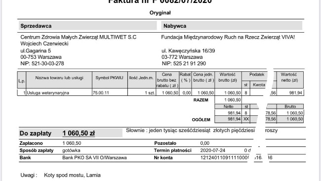 Jedyna cena jakiej nie zapłacimy, to cena cierpienia Lamii. Ale musimy spróbować i w Was nadzieja że to się uda! Dotychczasowe wydatki to koszt pobytu w szpitalu, badań i leków: 1060 zł Planowany rezonans: 1100 zł.Błagamy o pomoc! Mamy w tej chwili pod opieką kilka ciężko chorych kotów i całą gromadę maluchów i kotów dorosłych w domach tymczasowych.
