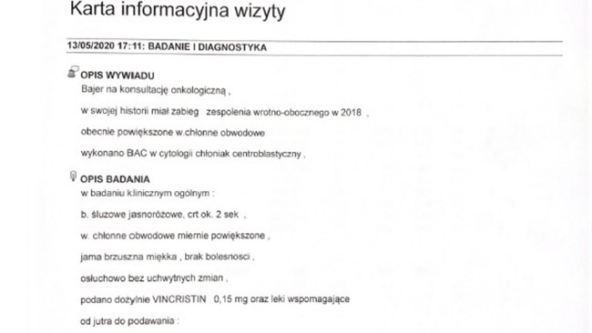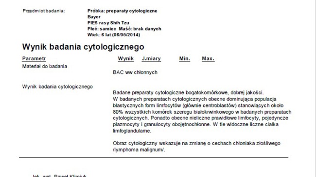 Cześć Wszystkim mam na imię Bayer, jestem psem rasy SHIH-TZU, mam 6 lat. Niestety od urodzenia życie mnie nie oszczędza, od małego borykam się z różnymi przypadłościami, trzy lata temu zaczęły się moje większe problemy gdzie toczyła się moja walka o przetrwanie, po długich miesiącach konsultacji, badań wykryto u mnie zespolenie wrotno-oboczne. W 2018 przeszedłem operację, która zakończyła się sukcesem lecz krótko po zabiegu pojawiły się u mnie problemy z nerkami, które trwają do dzisiaj. Moi właściciele robią wszystko co mogą i dbają o mnie co zapewniało mi na stabilne, zdrowe i długie życie... do dnia kiedy podczas pieszczot w okolicy szyi opiekunowie wyczuli ,,guzki", które okazały się być powiększonymi węzłami chłonnymi. Zaczęło się od nowa...wizyty u weterynarzy, morfologie, biopsja i czekanie w strachu. Dzień wyników okazał się być najgorszym scenariuszem- CHŁONIAK ZŁOŚLIWY w III etapie. Następnie pojechaliśmy w długą drogę na konsultację onkologiczną gdzie jedyną szansą na przedłużenie mojego życia okazała się być kosztowna chemia, która musi być podawana systematycznie w 16 sesjach (początkowo jedna w tygodniu przez cały miesiąc, tydzień przerwy, kolejne co dwa tygodnie i tak do października). Cały zabieg chemią to koszt 4000 zł, dodatkowo mają mi wykonywać badania typu morfologia, USG itp. które są dodatkowo płatne, dodatkowymi kosztami za każdym razem jest dojazd 200 km w obie strony. Niestety mam małe szanse na całkowite cofnięcie się choroby, ale chemia daje możliwość wydłużenia mojego psiego życia nawet o 4 lata. Bez tego weterynarze szacują mój czas na około 3 miesiące. Jestem już po pierwszej chemii, czuję się dobrze ale przeraża Nas trudna sytuacja w jakiej się znajdujemy.