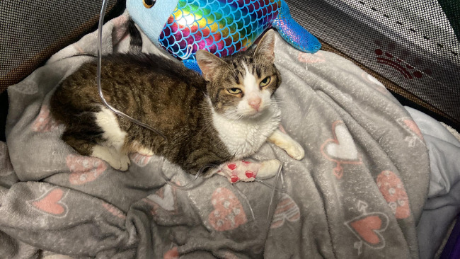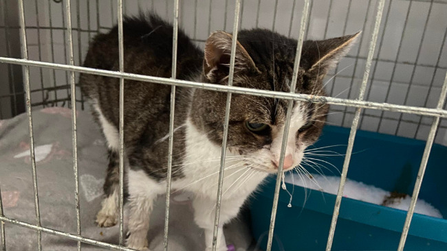 Kitty to starsza kotunia przyniesiona do uśpienia. Leżąca, wycieńczona, bardzo marna. Straciła dom, w którym miała doczekać starości. Zrozpaczona patrzy na świat zza krat.