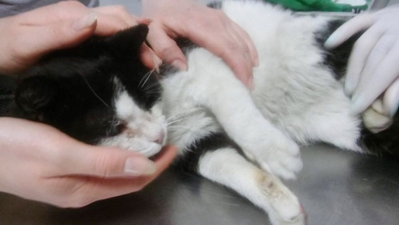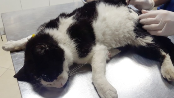 Dostajemy zgłoszenie, że na ulicy siedzi ranny kot, który krwawi i leci mu ropa z okolic ogona. Niestety byłyśmy w pracy, ale umieściłyśmy na Facebooku apel o kocie z prośbą o złapanie go i zaniesienie do lecznicy. Kota szukało kilka osób i wreszcie popołudniu udało się go zlokalizować i zabrać biedaka do lecznicy.