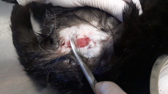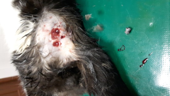 W lecznicy okazało się, że rana w okolicy ogona to efekt... postrzału z wiatrówki! Z ciała kota wyjęto kilka śrutów - kotu podano kroplówki, antybiotyki i leki przeciwbólowe, ranę porządnie oczyszczono pod narkozą.
