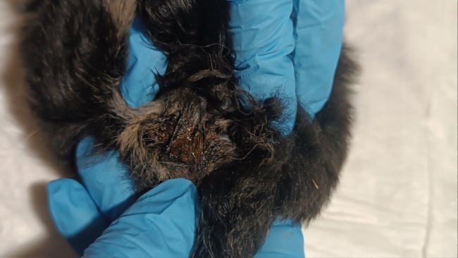 Zapchany odbyt, nie mógł się wypróżnic od kilku dni, już oczyszczony. A smród niemiłosierny.. Po odetkaniu wyszła z niego taka ilość kału, gdzie zastanawialiśmy się gdzie on to zmieścił. Później po częściowym odetkaniu.