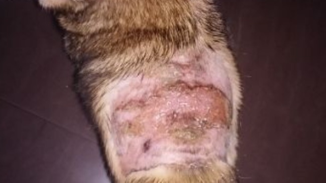 Rok temu o tej samej porze pojawiła się duża rana na grzbiecie lekarze zdiagnozowali, że musiało go coś ugryźć. Po leczeniu pomalutku rana się zagoiła.