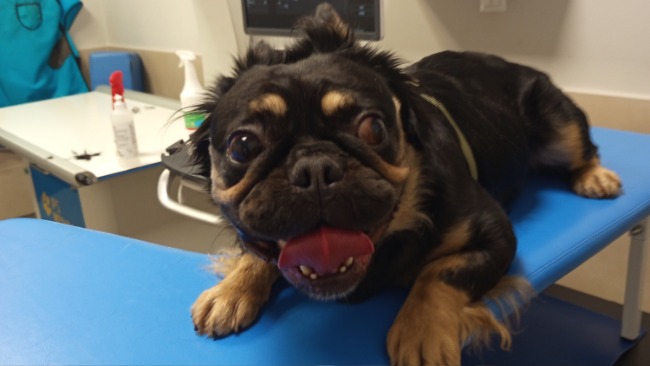 Bardzo ciężko było zrobić mu badanie USG, nie można go było położyć na pleckach bo bardzo go to stresowało, charczał, ślinił się i próbował się podnieść.Na szczęście udało się go przebadać na stojąco :)