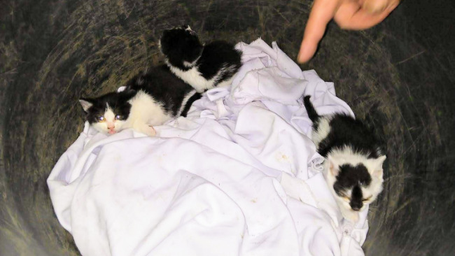Kociaki zostały znalezione w Warszawie Mokotów - same bez Kocicy - nieopodal miejsca karmienia kotów wolno żyjących. Pracownik firmy zauważył "coś" małego i płaczącego, kociaki wychodziły spod kontenera i miauczały w niebogłosy 😟 wołając o pomocy 😟😟😟